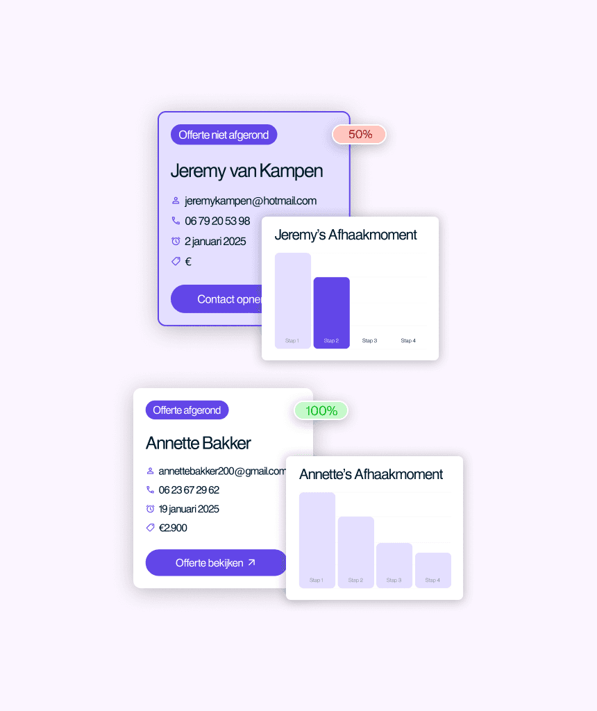 Digitaliseer je verkoopproces en laat elke aanvraag automatisch de juiste stappen doorlopen. Van lead tot offerte en opvolging zonder handmatig werk.